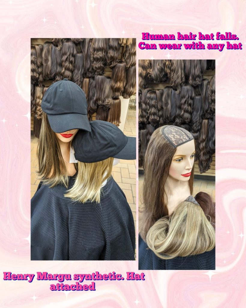 Hat falls are designed to be worn with a hat, as they do not have any hair on the top.